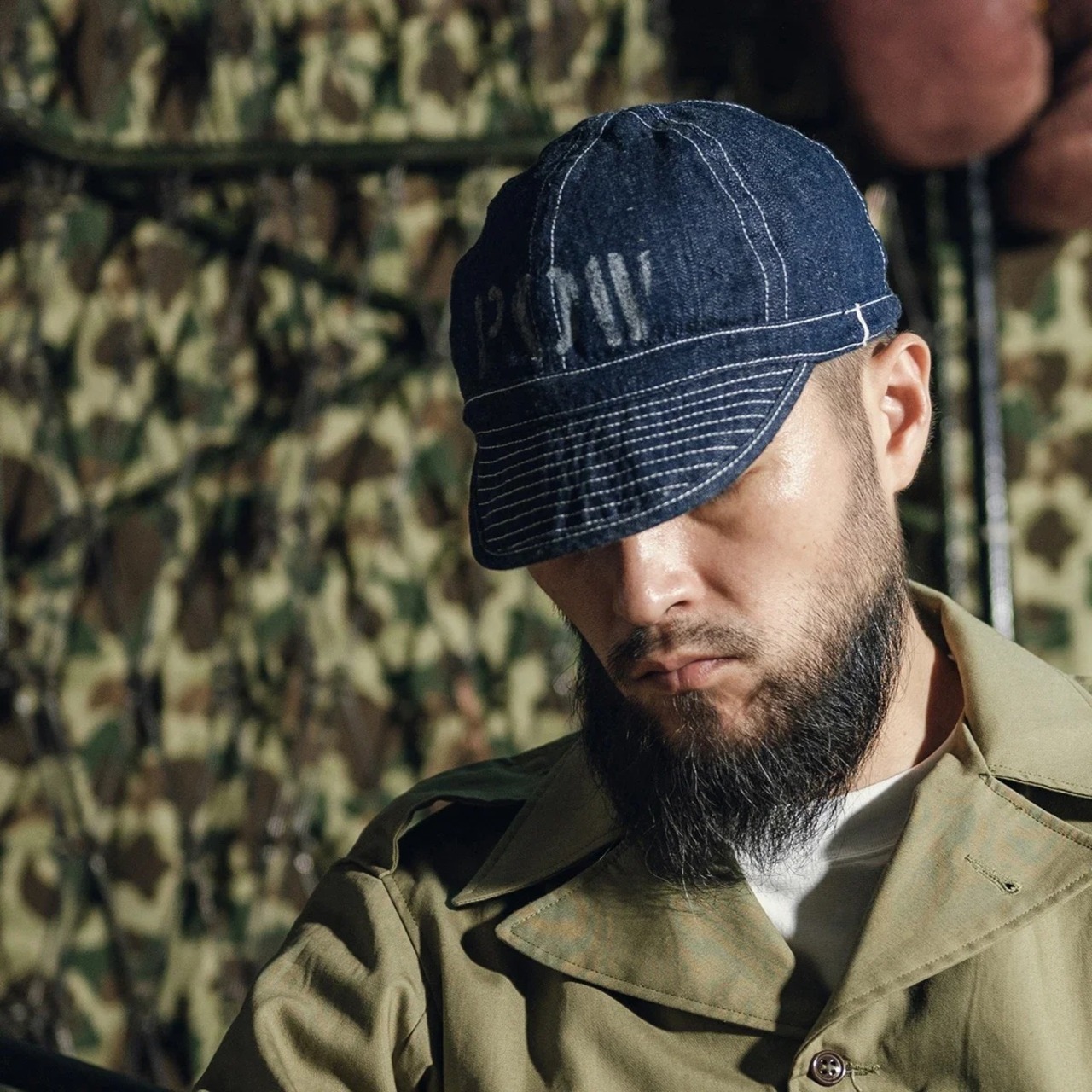 第二次大戦期の囚人用ワークキャップをモチーフにした、ブロンソン製のヴィンテージリプロダクションモデル。力織機で織られた13オンスのセルビッジデニムを使用し、クラシックな6パネル構造と無骨なトップボタンで仕上げたデザイン。通称「A-3」スタイルのこのキャップは、労働者や軍関係者が実際に着用していたモデルを忠実に再現しつつ、現代のスタイリングにもフィットします。