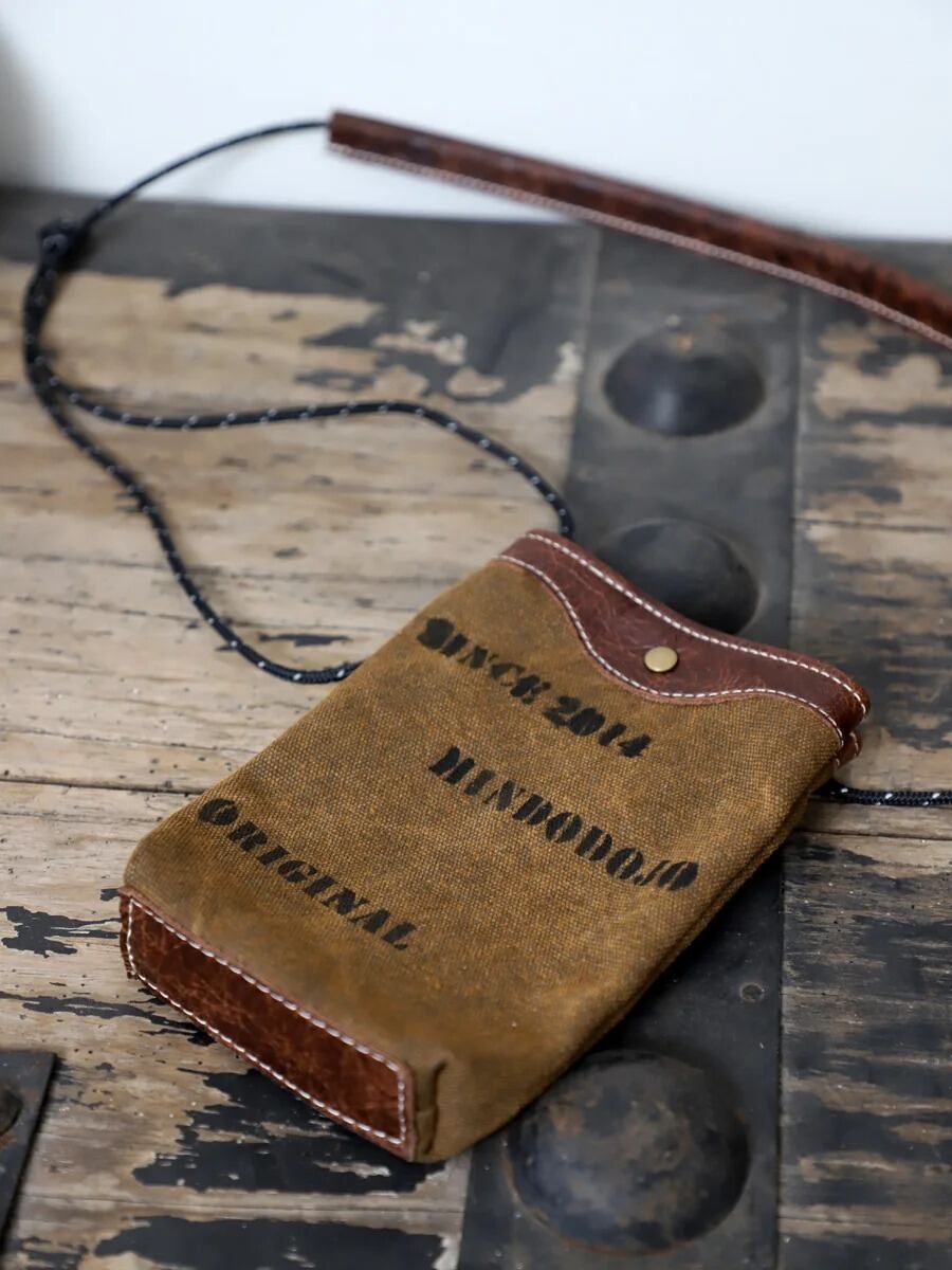 頑丈なキャンバス地と本革のディテールが際立つ、無骨なユニセックスクロスボディバッグ。